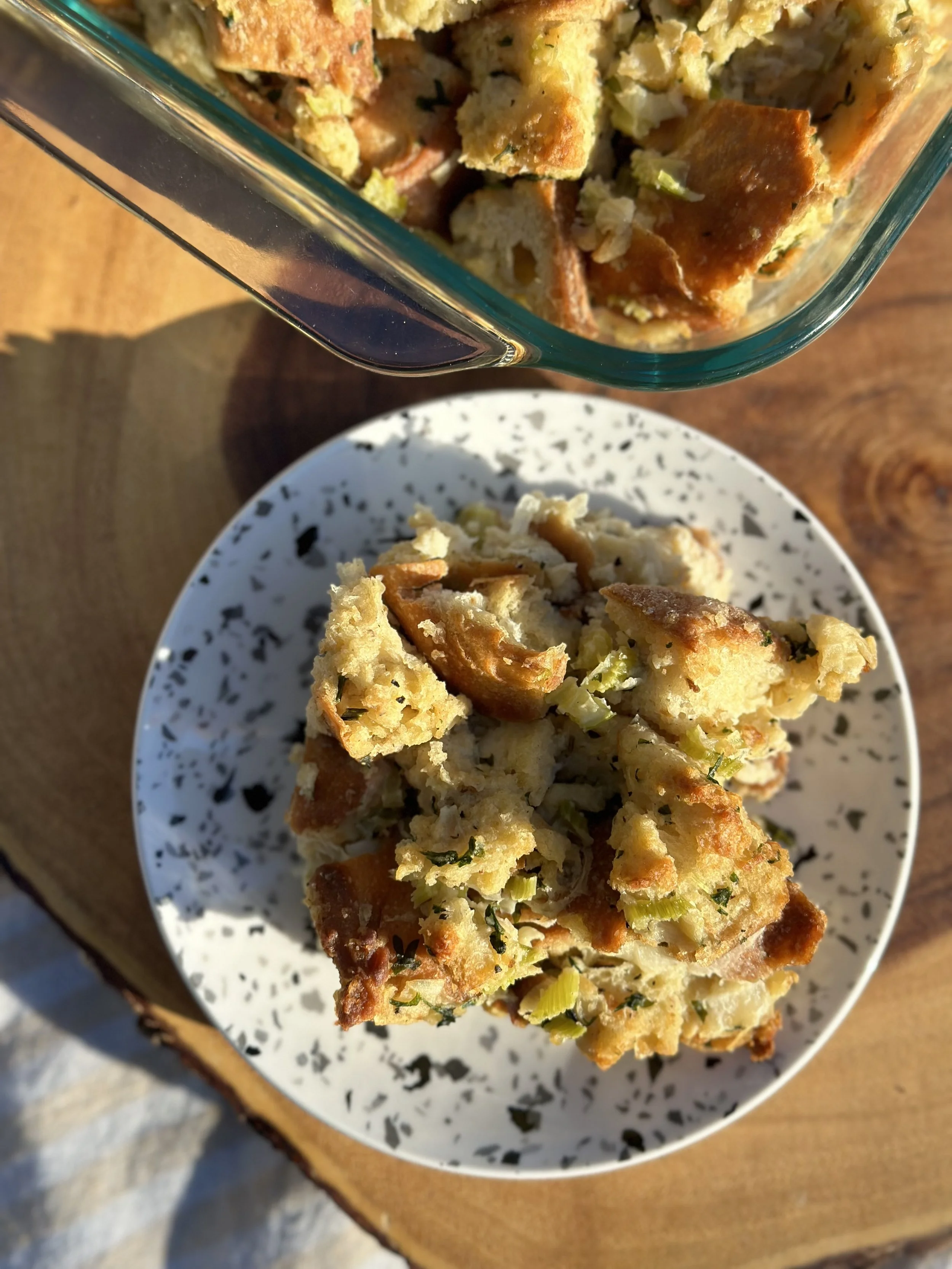 Freshly cubed bread and a homemade roux. Full pan serves 12, half pan serves 6.